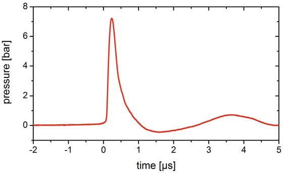 水下火花放电发出的压力脉冲。火花放电与水听器之间的距离:10毫米