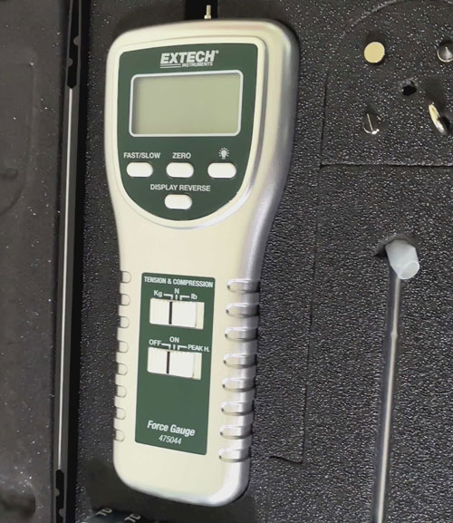 Extech 475040 和 475044 数字式测力计的其他功能包括:5 位 0 4 英寸(10 毫米)液晶显示屏,可翻转显示以适应不同的视角;称重传感器;零点调节;峰值保持;以及超量程功能。...